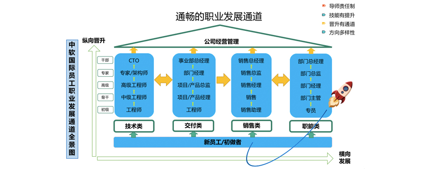為了員工獲得更廣泛的工作經(jīng)驗(yàn),獲得更多的知識(shí),獲得更多的職責(zé),獲得更多的工作機(jī)會(huì),公司提供了多通道職業(yè)發(fā)展道路: