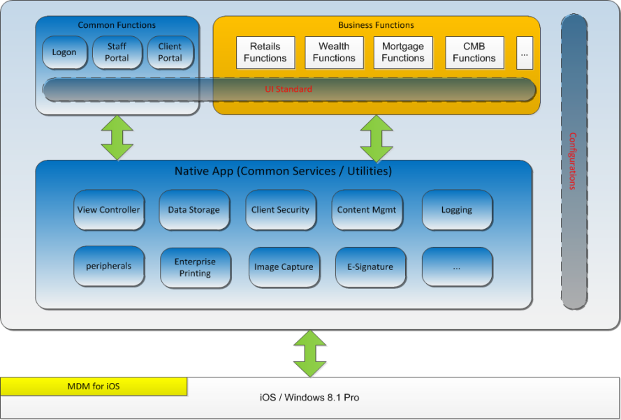 従業員モバイルプラットフォームは、従業員モバイルアプリに特化した一貫性?拡張性?再構成可能性を備えたグローバル共通のソリューションです。SMPはモバイルデバイスに対し、統一的なタッチプログラミング?インターフェイスを提供してサービスの再利用性を高め、従業員は異なったサービス、機能モジュールおよびアプリを使用する際に一本化した指タッチの體験が得られます。また、オフライン操作機能も提供しており、ネットワークがない場合でも従業員が業務を進めることができます。SMPは現在HSBC銀行內部で口座開設、ローン、保険、財産管理など、様々な業務シーンに応用されています。